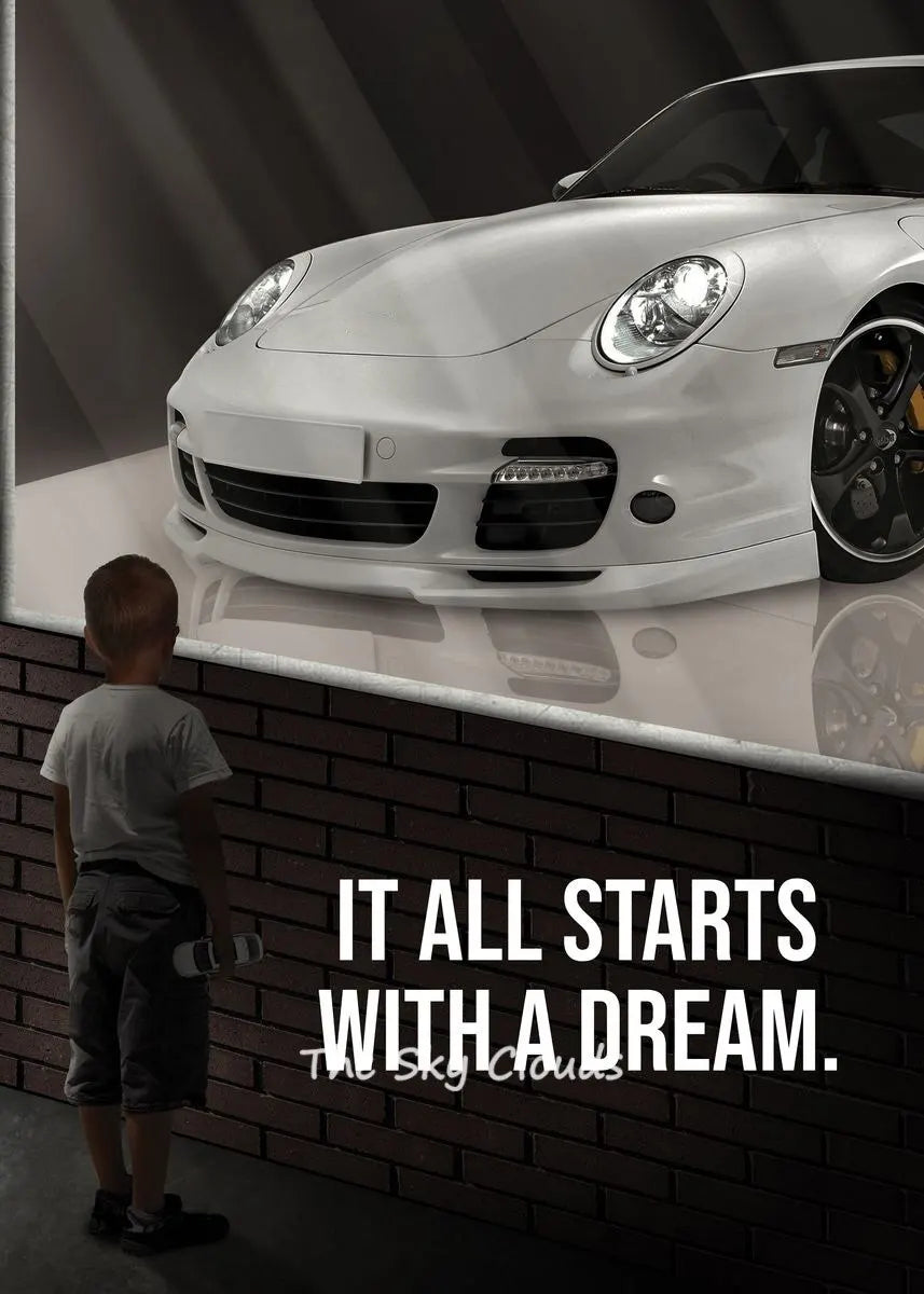 Luxury Black White Lamborghini Supercar Canvas Art It All Starts with A Dream HD Print Wall Decor for Office Home